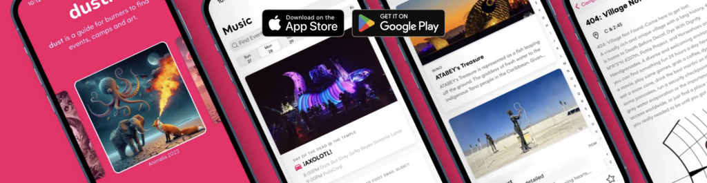 DUST is genuinely the easiest way to keep track of theme camp events, workshops, and art installations across the community, so we’re glad to have it back. Never used it before or forgot everything from last year? The creator put together very detailed instructions that will walk you through everything.